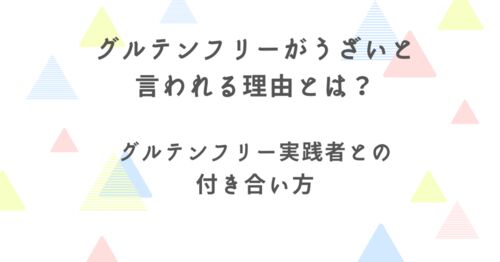 近年ブームになっている「グルテンフリー」。実践者が増える一方でグルテンフリーってなんだかうざいな、と感じる方もいるのではないでしょうか。ゆるくグルテンフリーを実践している立場から「なぜグルテンフリーをうざく感じるのか」解説します。