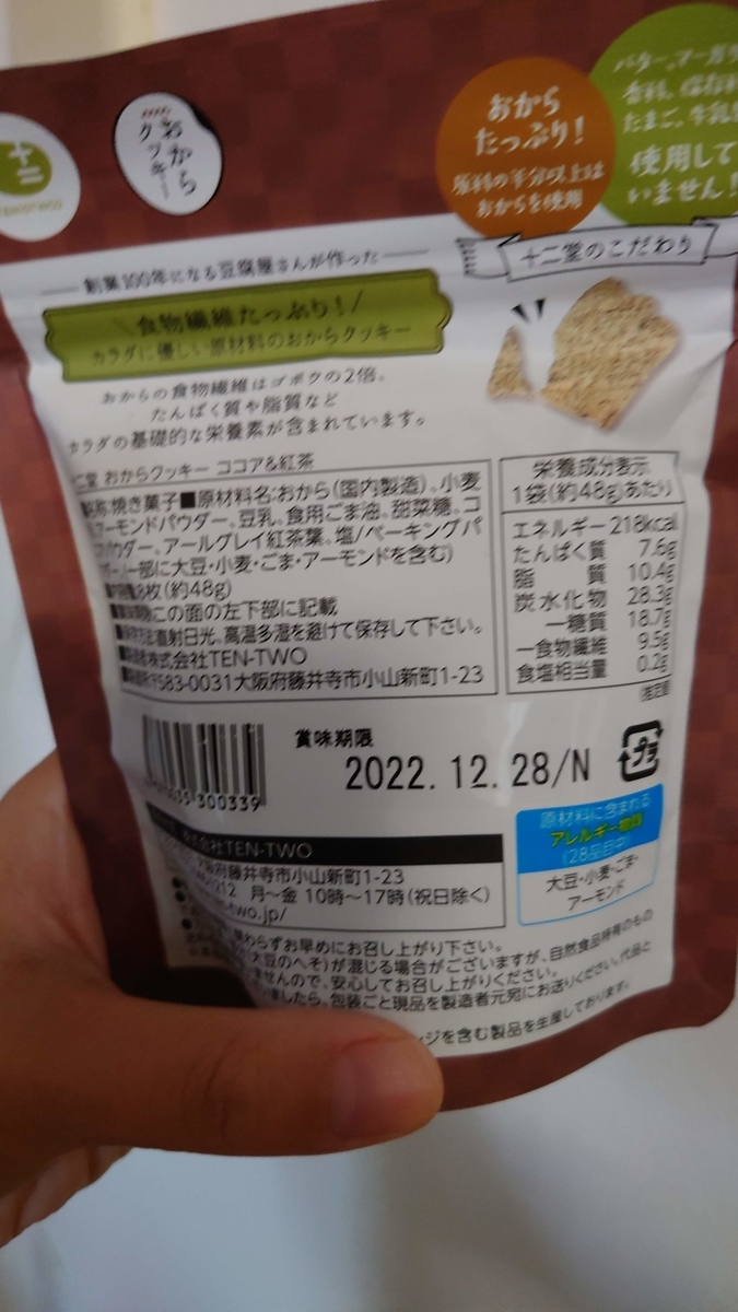 十二堂さんというメーカーから出ているおからクッキーも購入して食べてみましたがおいしかったです。