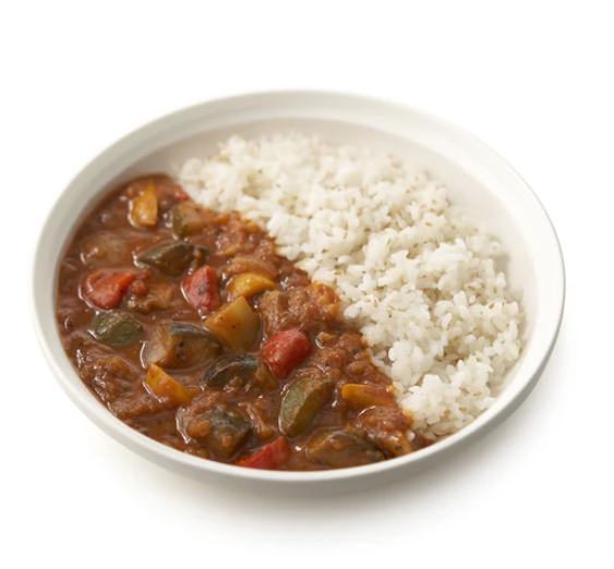 玉葱(国産)、ミックス野菜(ズッキーニ、なす、赤パプリカ、黄パプリ カ、食塩、パーム油)、ホールトマト、野菜ブイヨン、トマトペースト、オニ オンソテー、なたね油、ダイストマト、炒め野菜ペースト(玉葱、人参、 オリーブ油、セロリ)、香辛料、食塩、ガーリックピューレ、ジンジャー ペースト、コーンスターチ、砂糖、チリパウダー